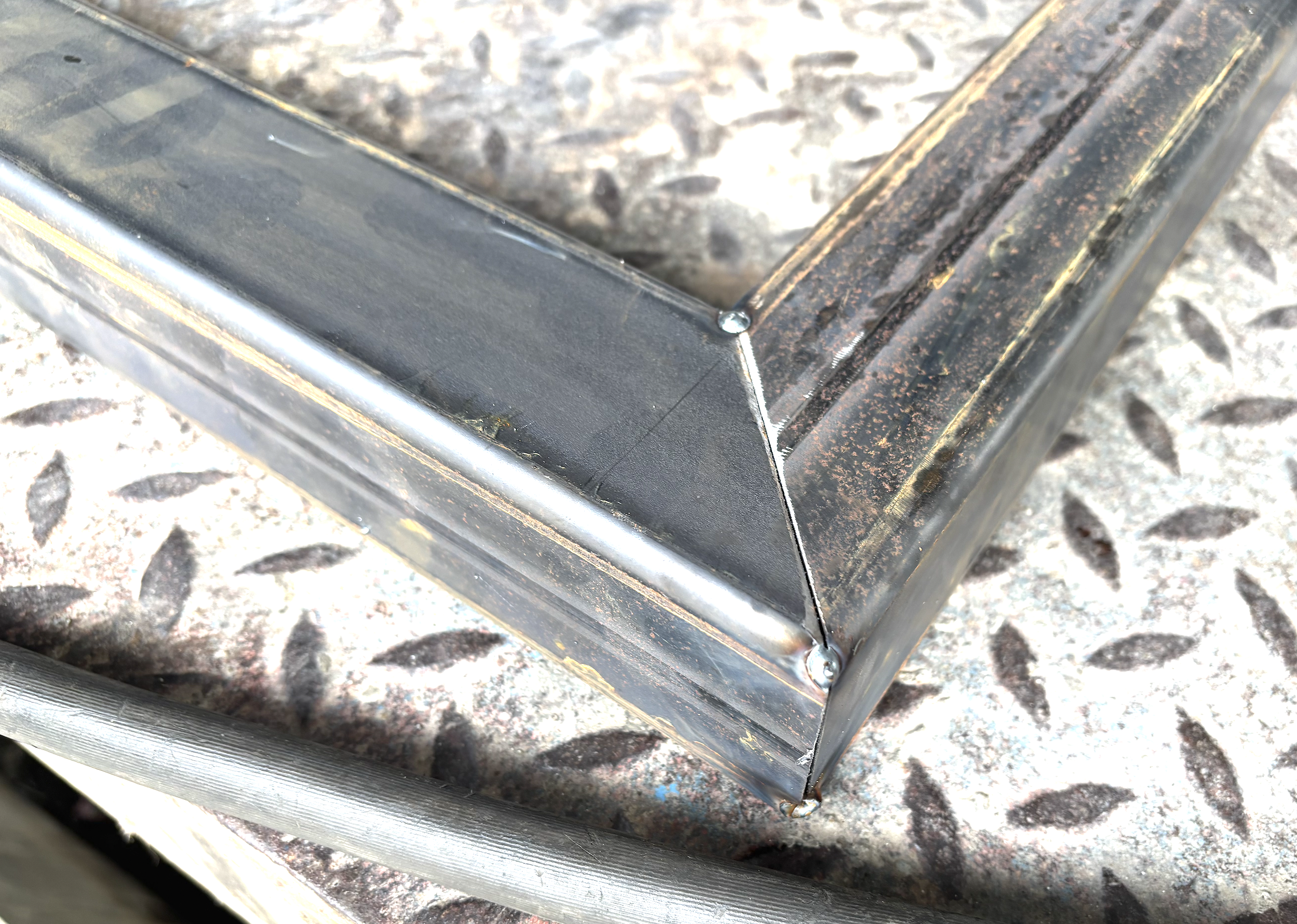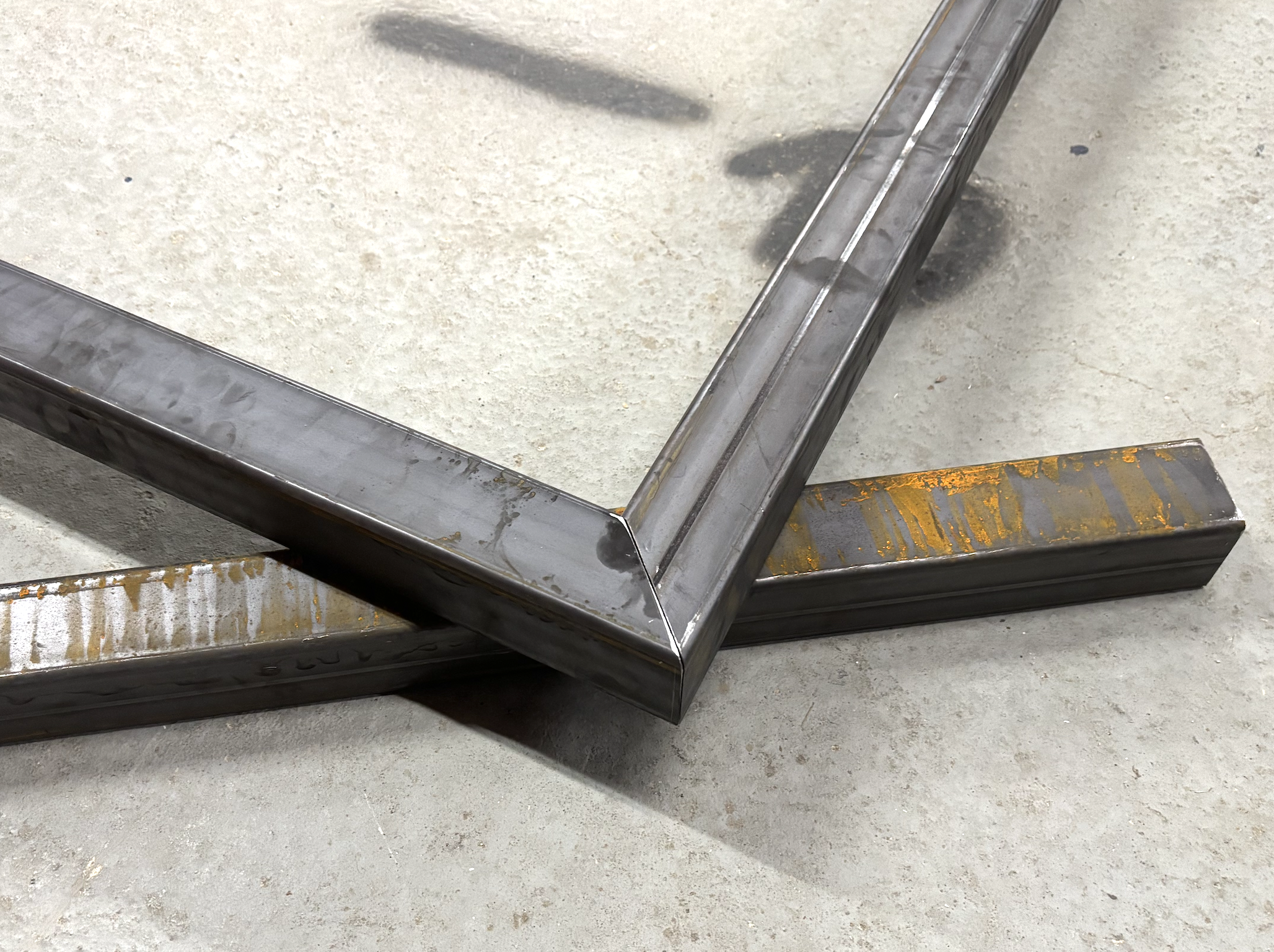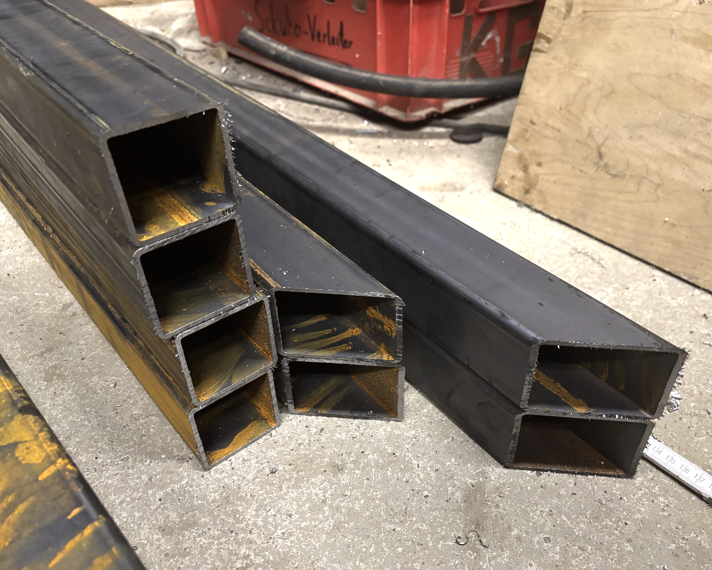 Fertig gesägte Rohre - die Tischoberseite mit 45º Gehrung