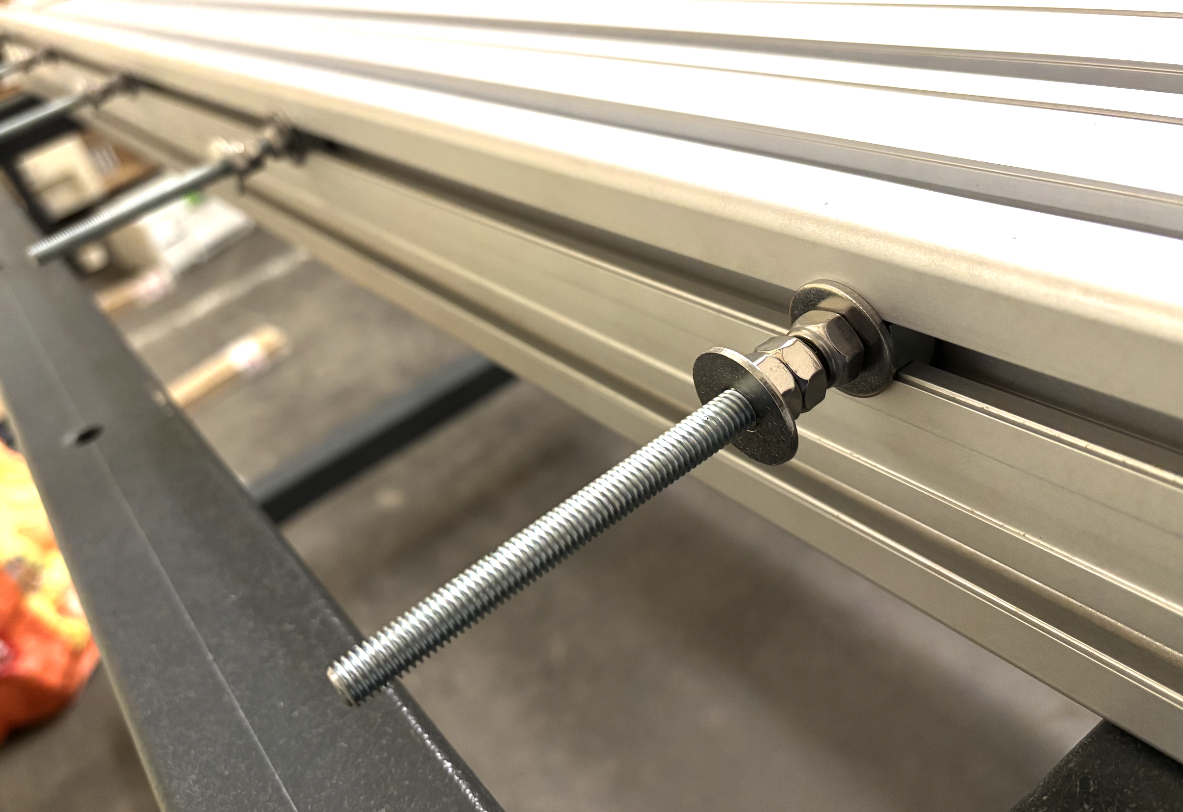 Auf der Tischunterseite mit M8 Stopmuttern verschrauben.