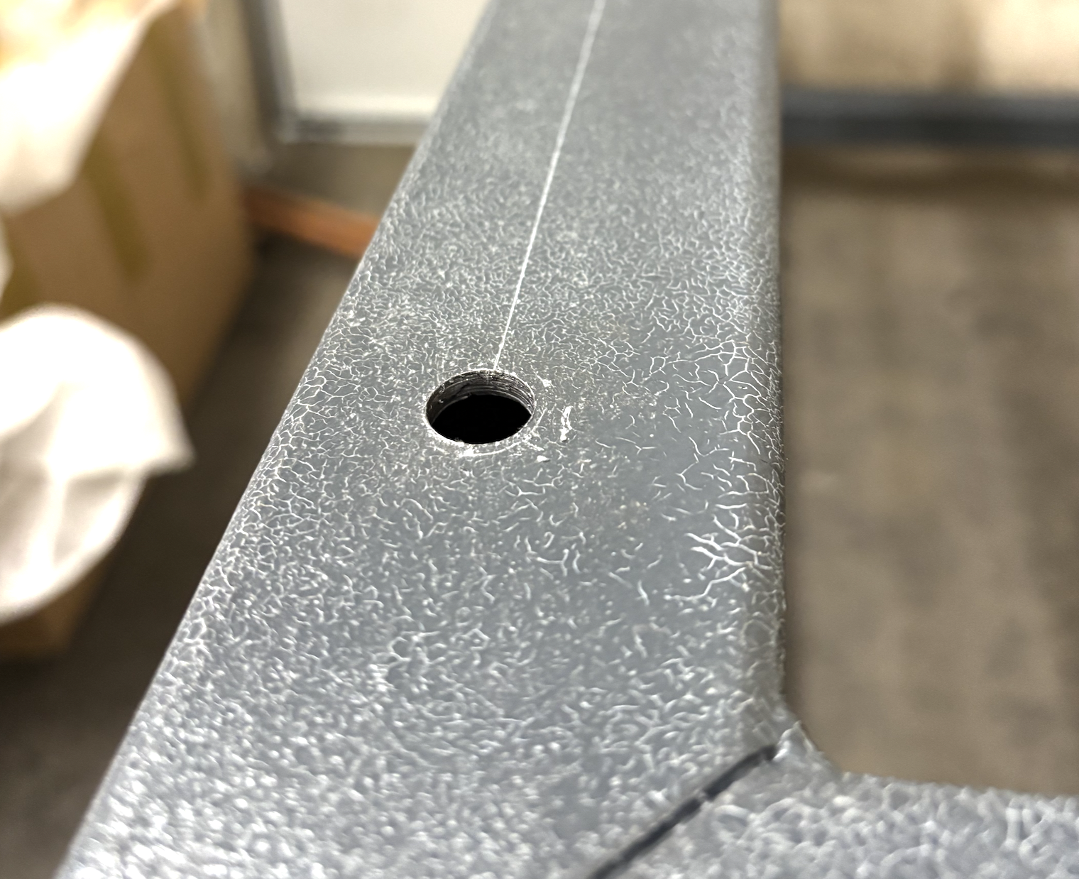 Bohrungen für die Verschraubung der Fräse auf dem Untergestell (10 er Löcher mit 12er Senker geweitet)