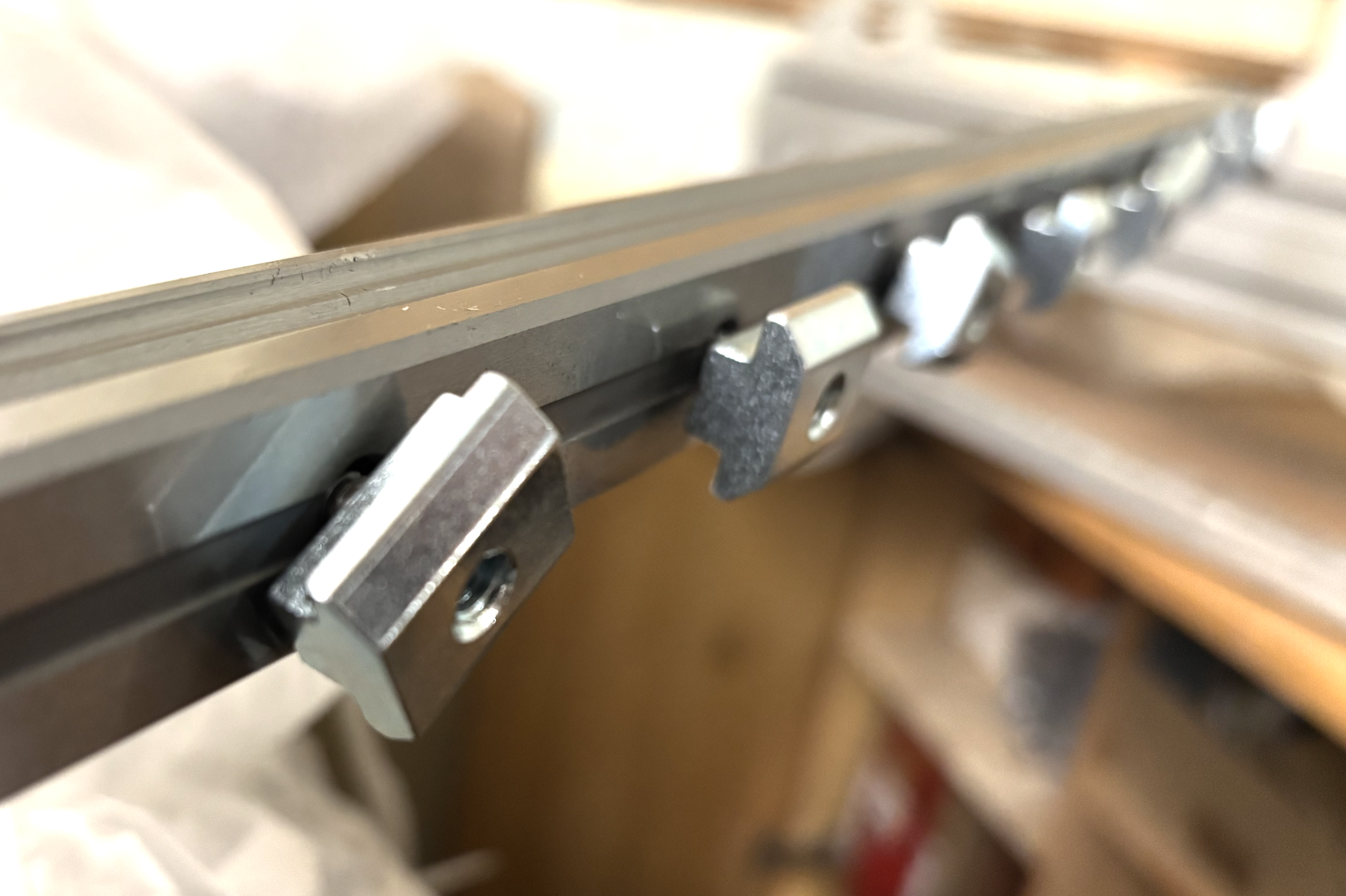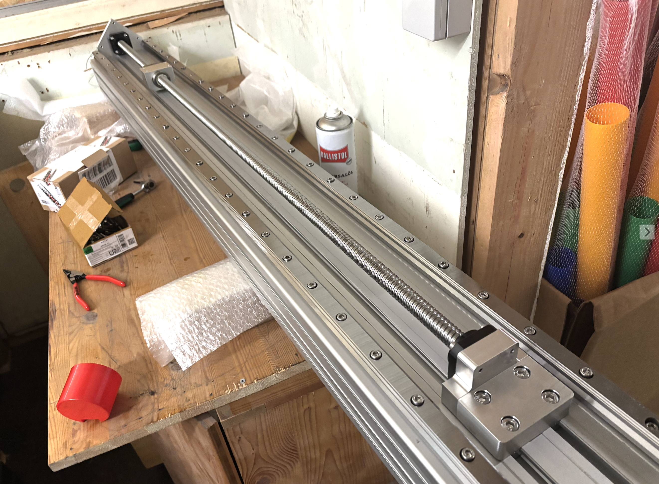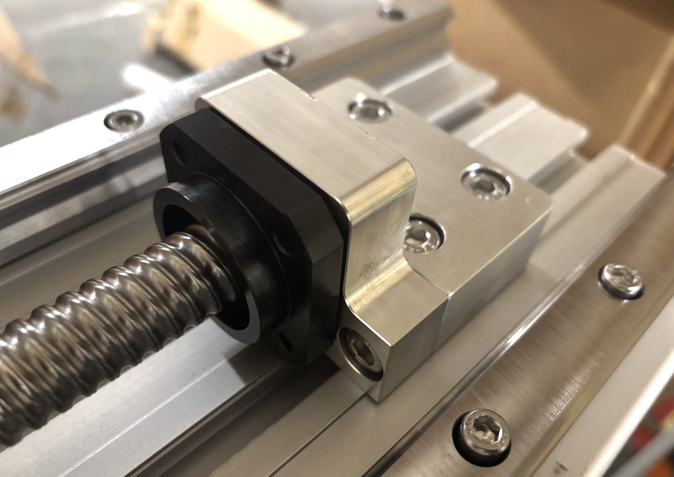 Linearschienen mit Nutmuttern und M6 Schrauben vorbereitet für die Montage