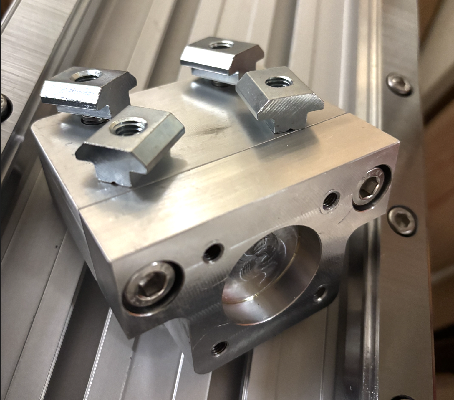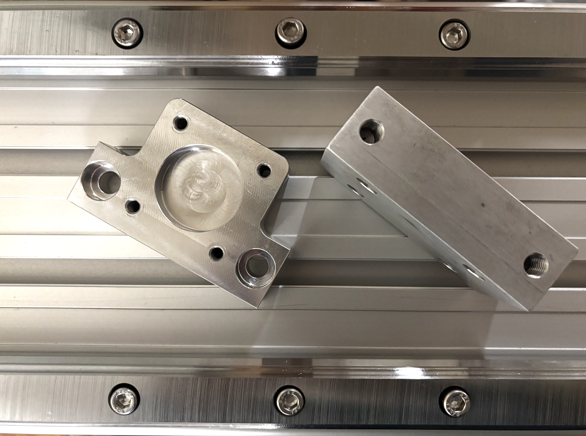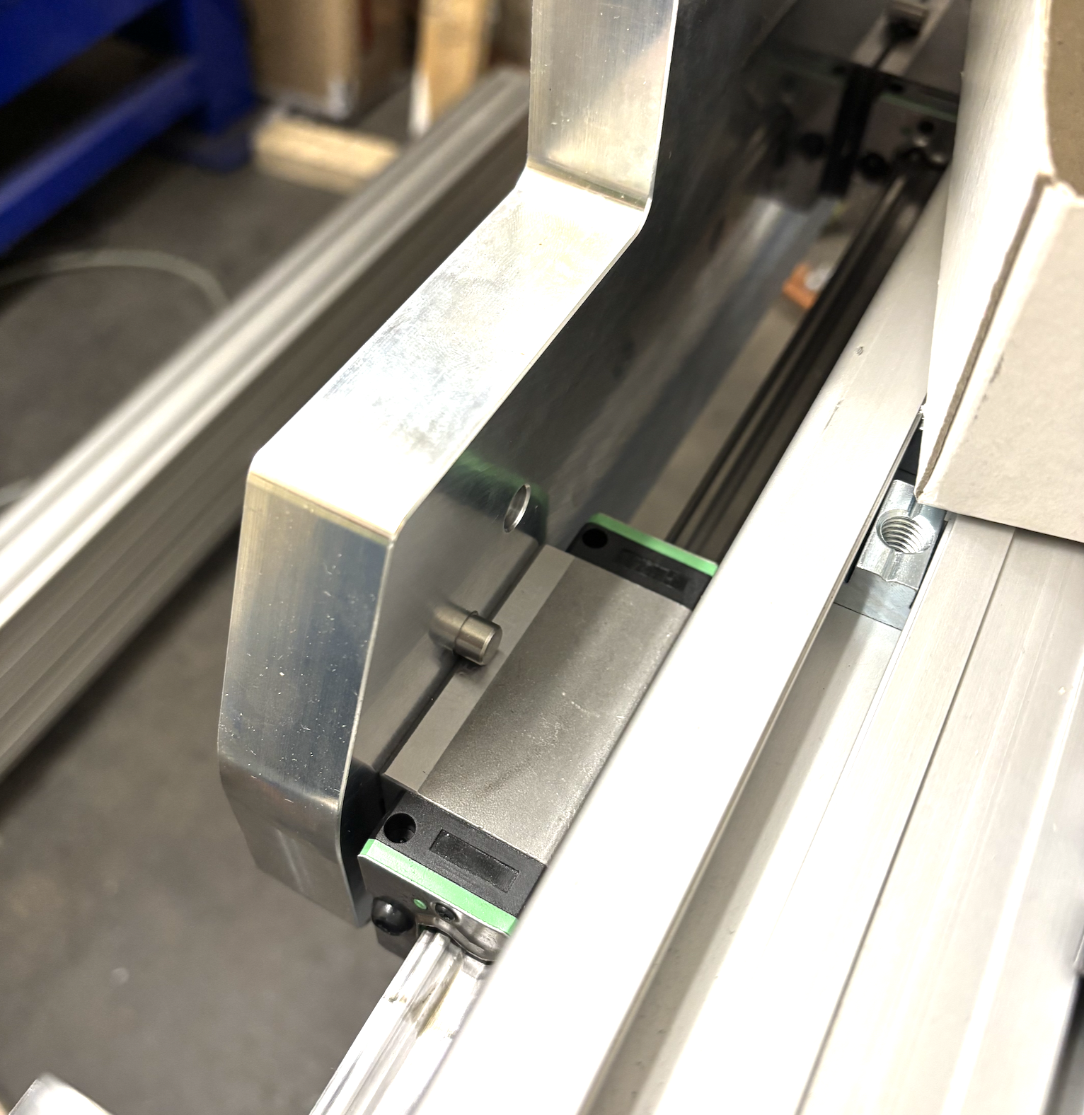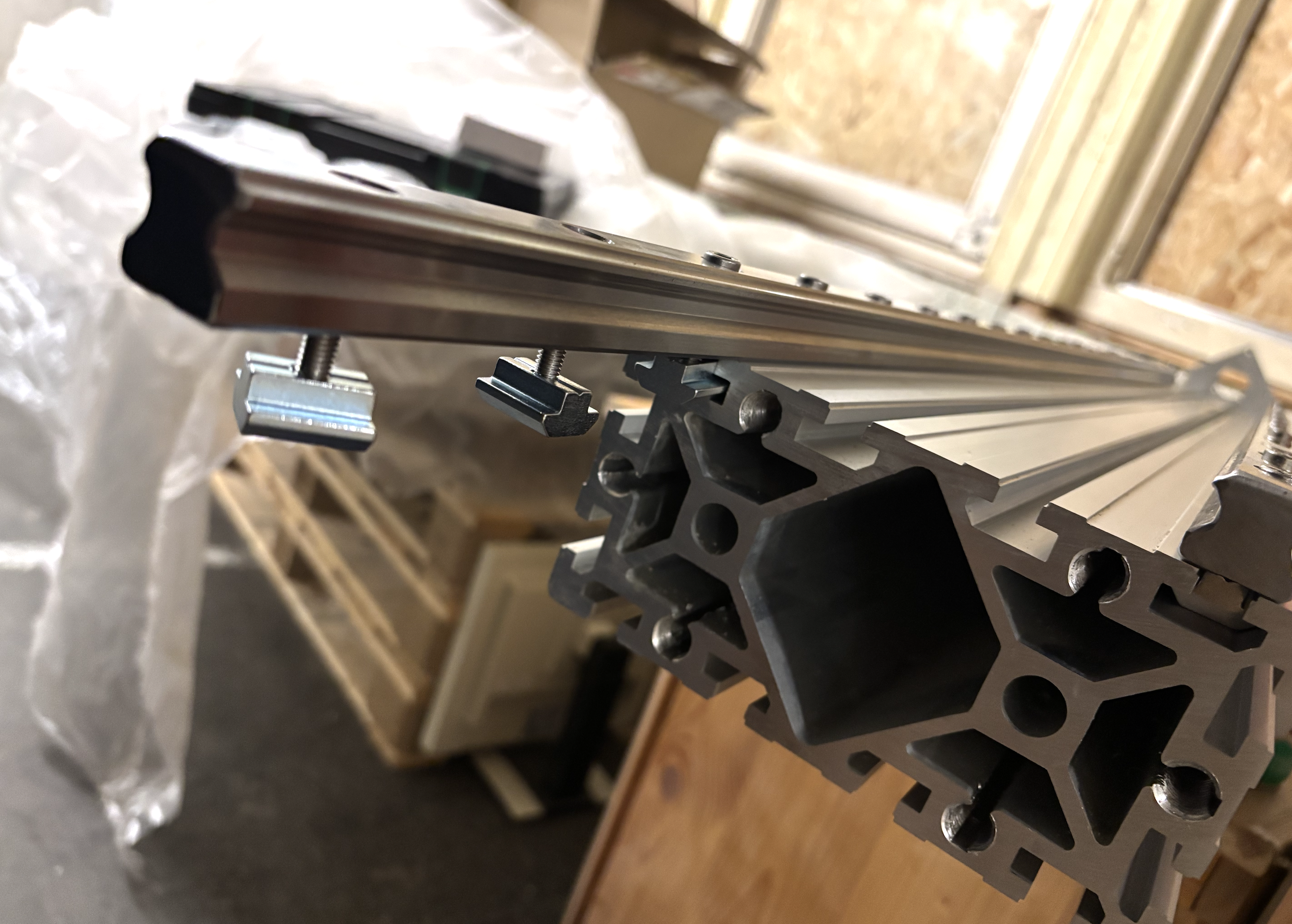 Linearschienen mit Nutmuttern und M6 Schrauben vorbereitet für die Montage