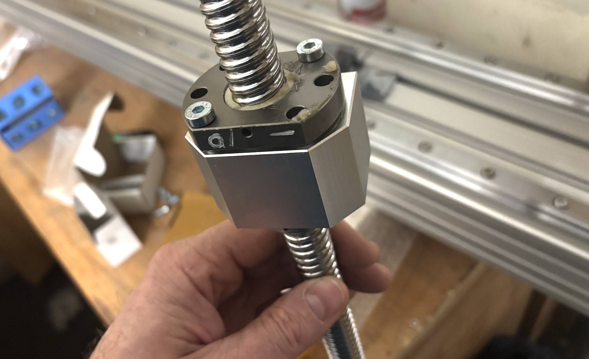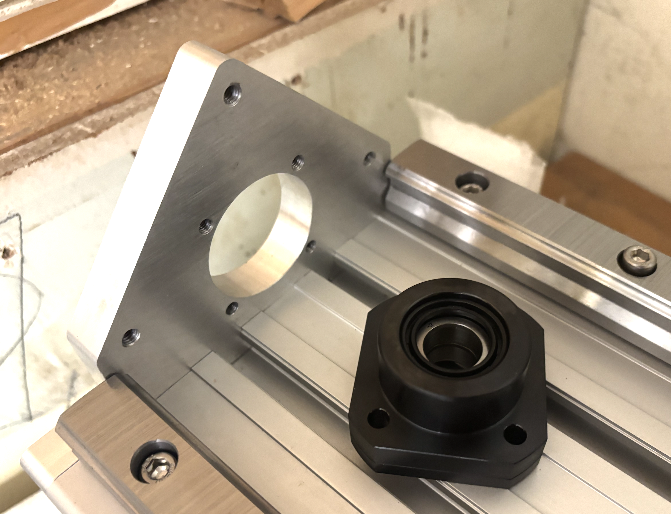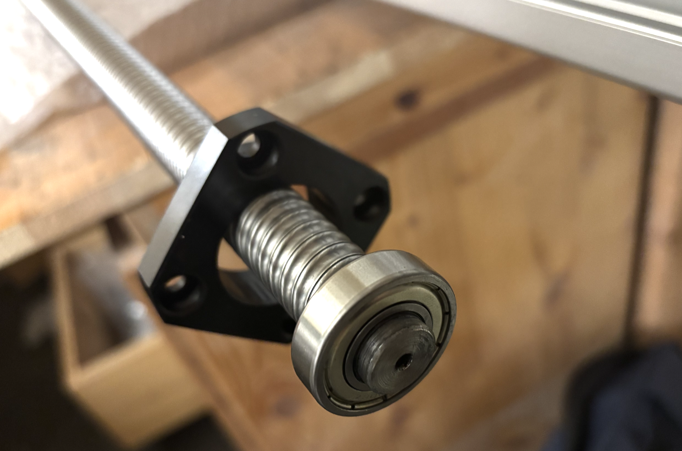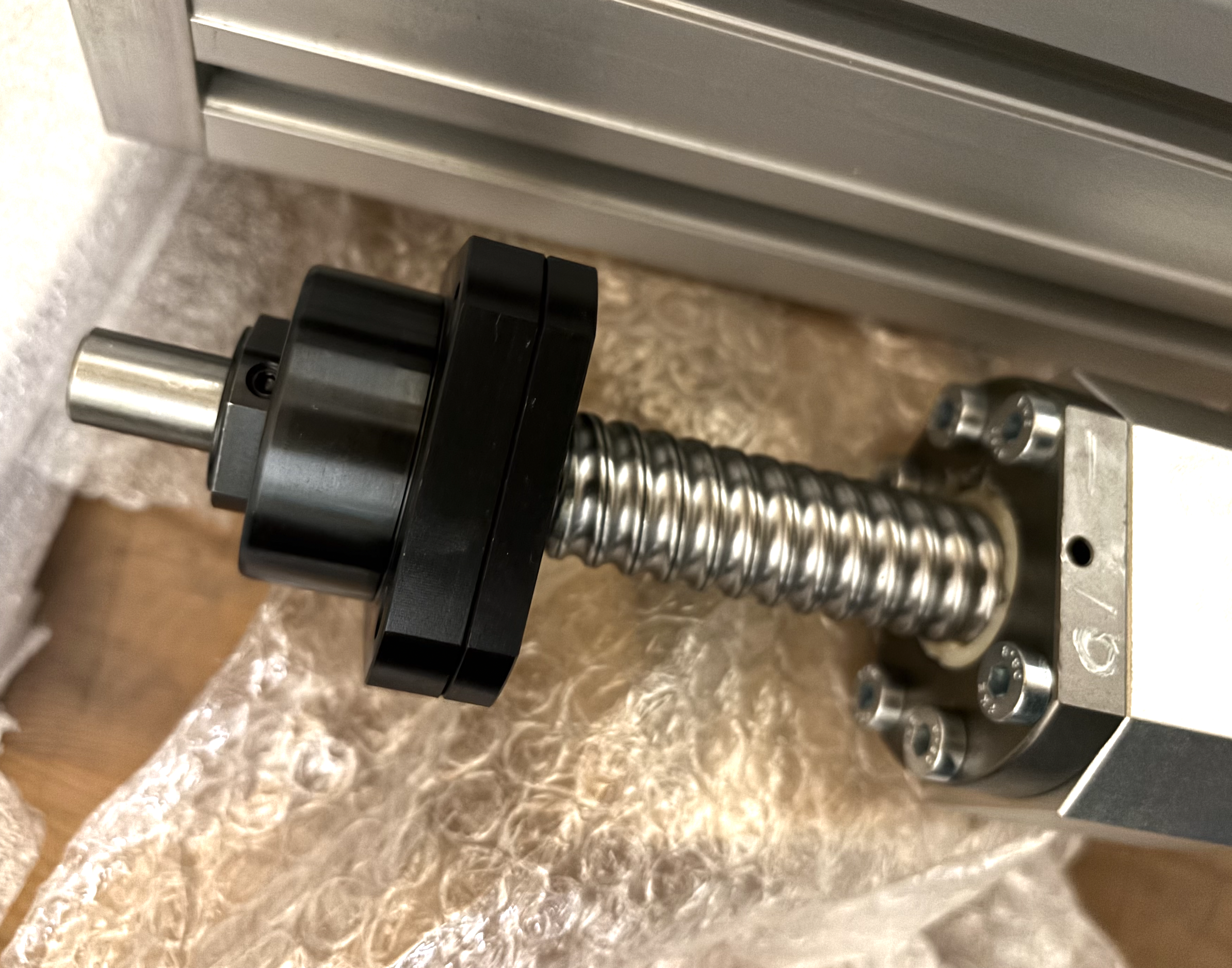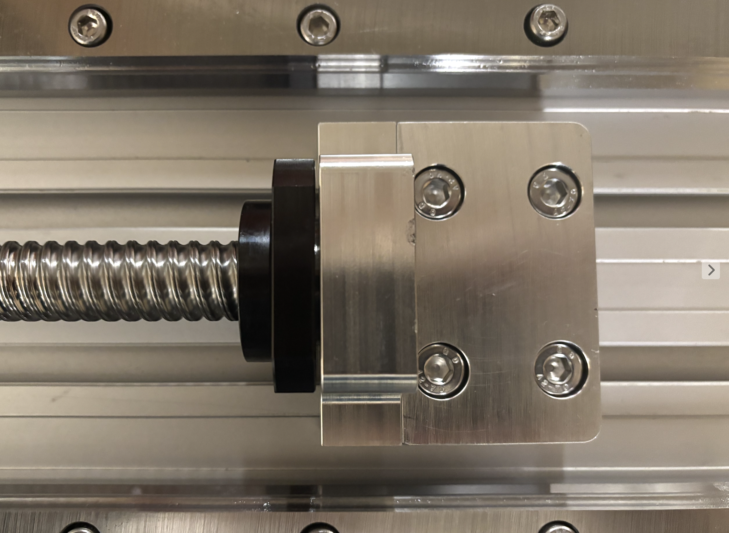 Anschliessend Verschraubung des Spindelblocks mit der Kugelumlaufspindel