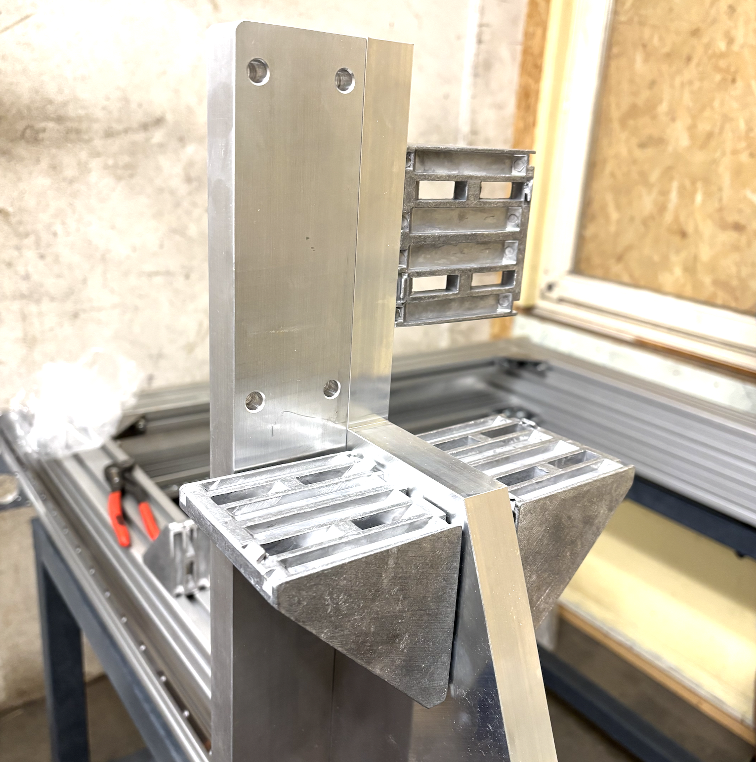 Komplett montierter Portalbalken - Teile sind noch nicht ausgerichtet