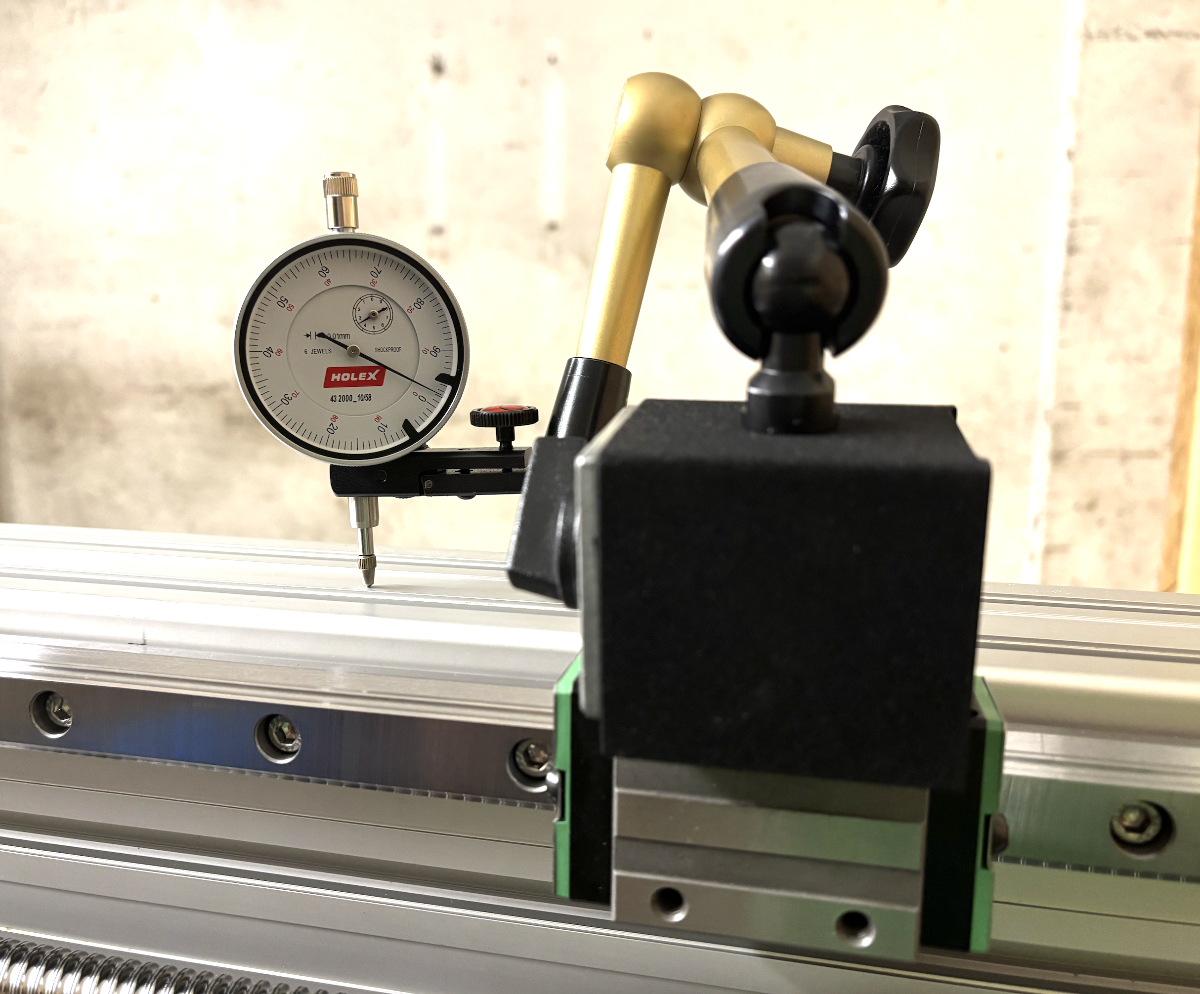 Feinmessuhr auf Messstativ mit Magnet auf Blockwagen