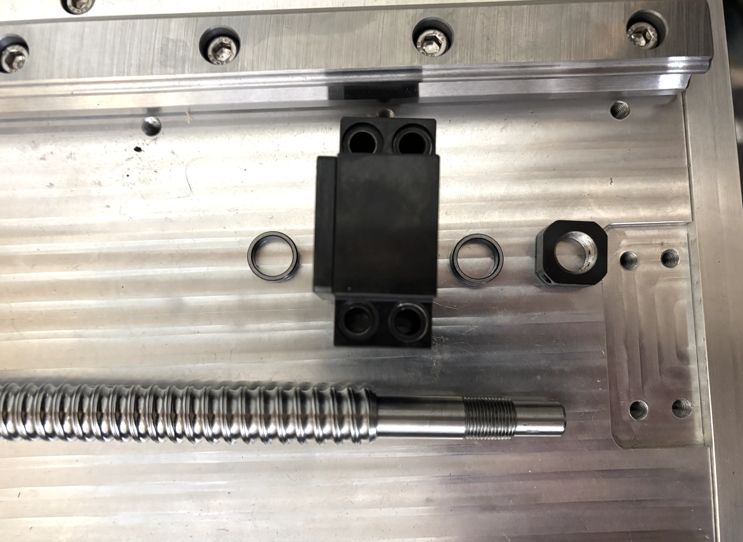 - Kugellager wird mit Spannring auf Kugelumlaufspindel fixiert