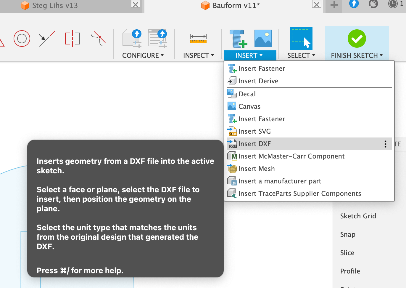 - Neuer Sketch auf Konstruktionsebene "Mittellinie"