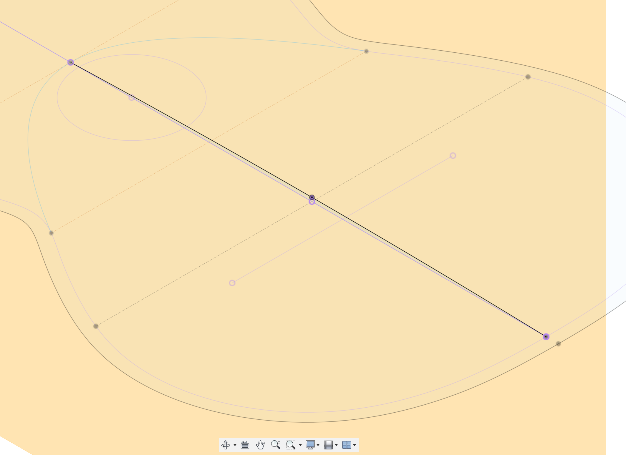 - Mittellinie, Endpunkt, Konstruktionslinie höchster Punkt Wölbung und Sperrbalken "projezieren"