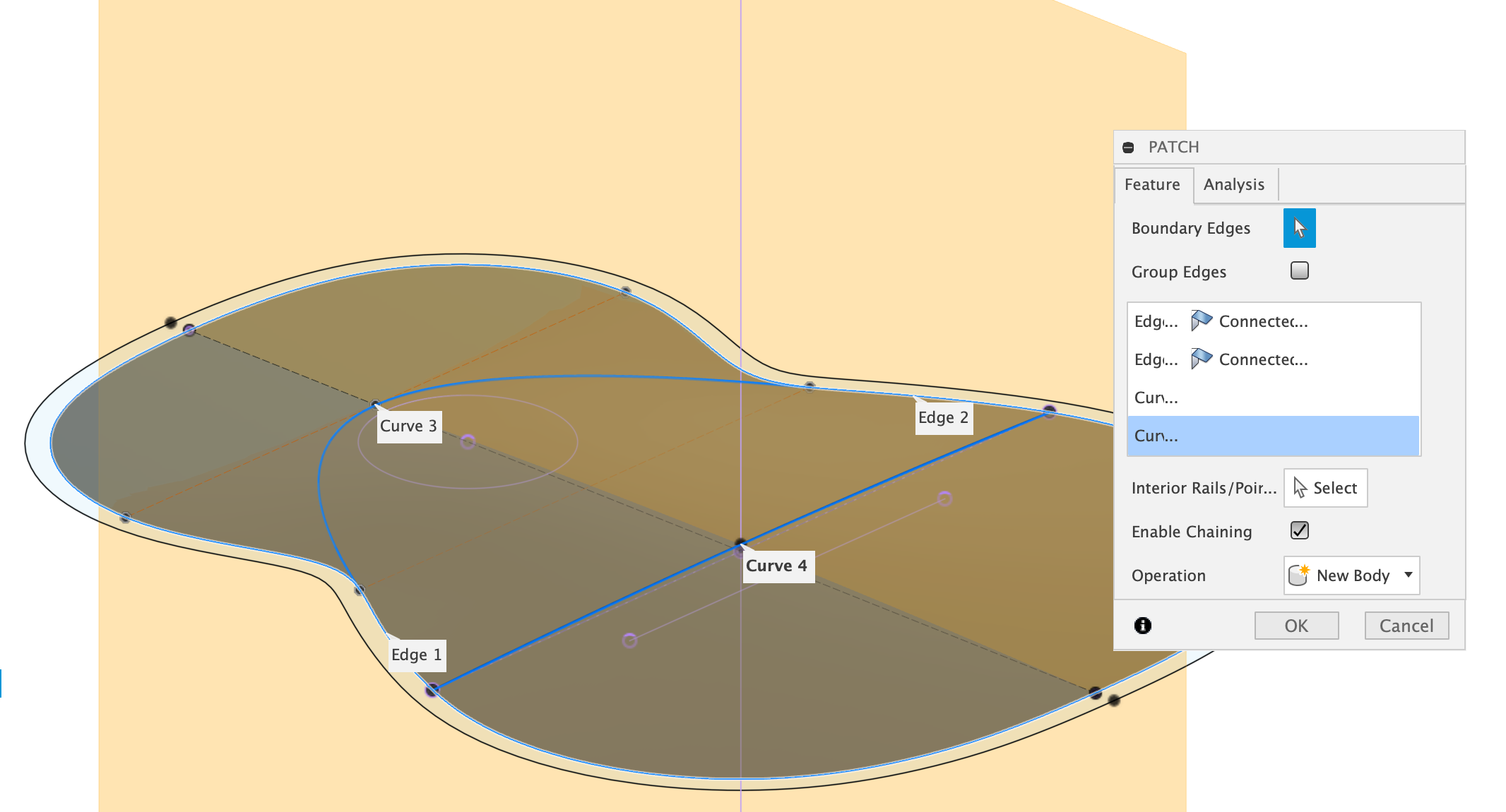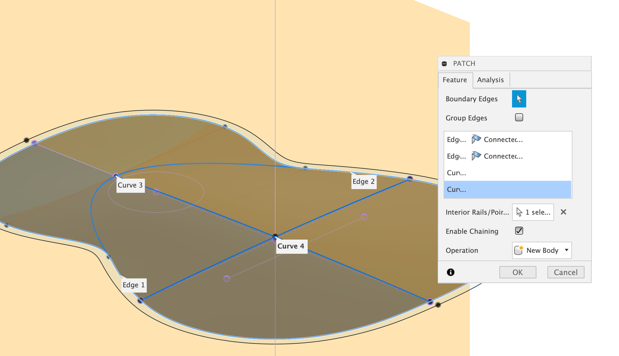 - Aussenumriss, Querwölbung und Ebenenkurve als Boundary Edges auswählen