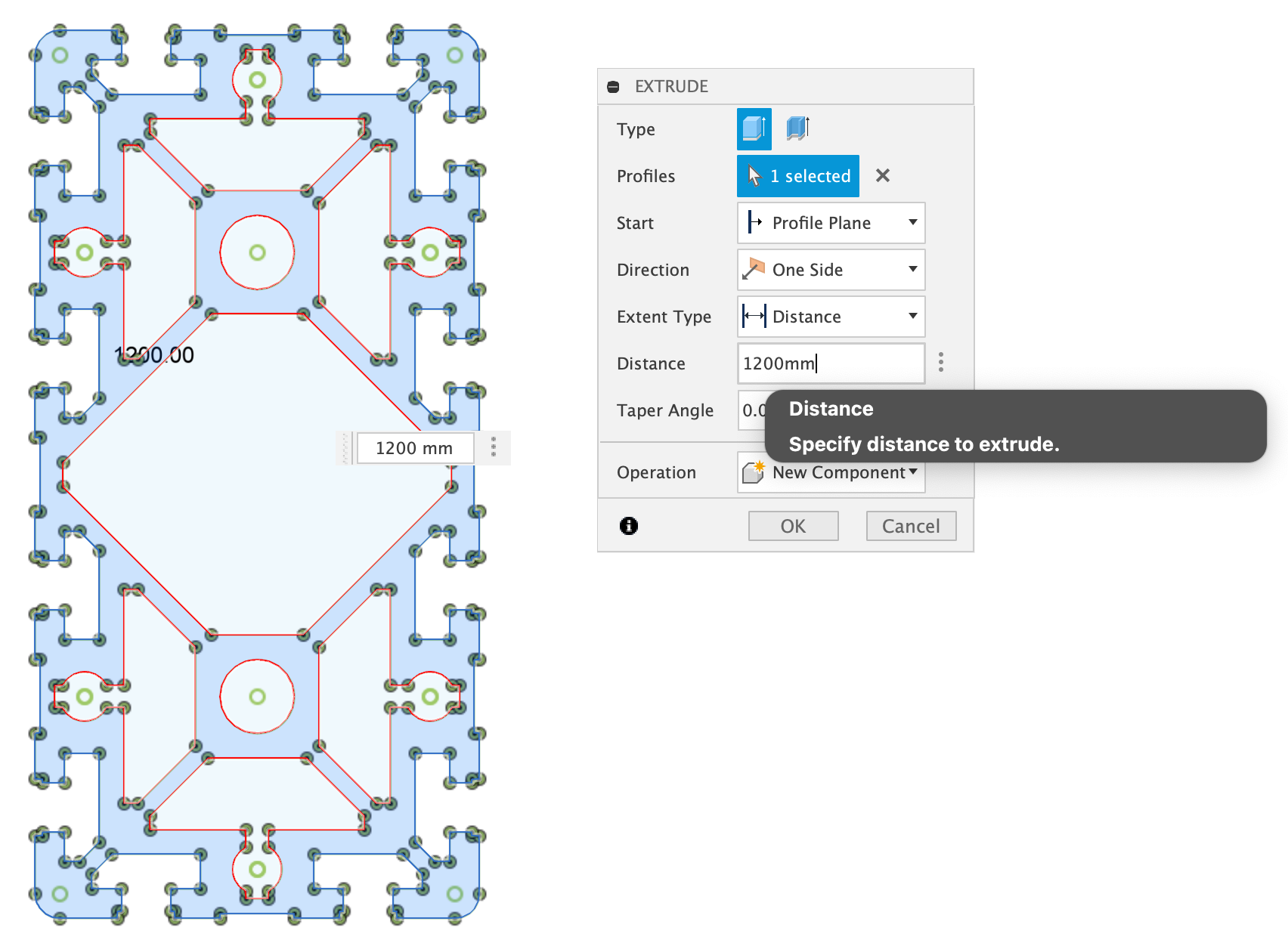 - Jetzt kann im Kontextmenü die Länge angegeben werden, in die man das Profil extrudieren möchte
