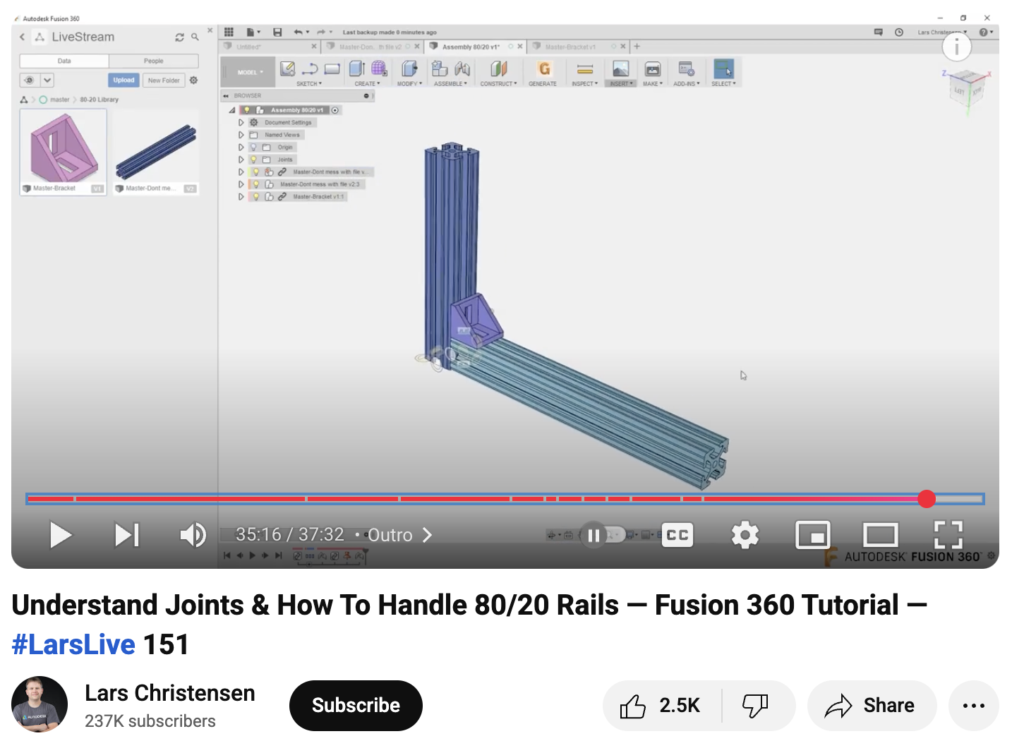 Weitere nützliche Tipps zum Umgang mit Aluminiumprofilen in Fusion - insbesondere wie diese mit "Joints" verbunden werden - finden sich in diesem Youtube Video: