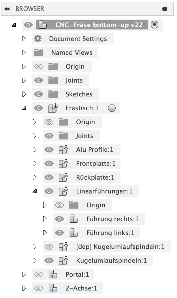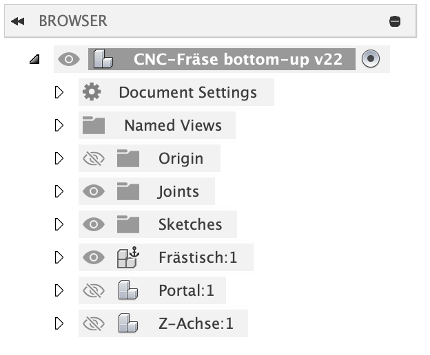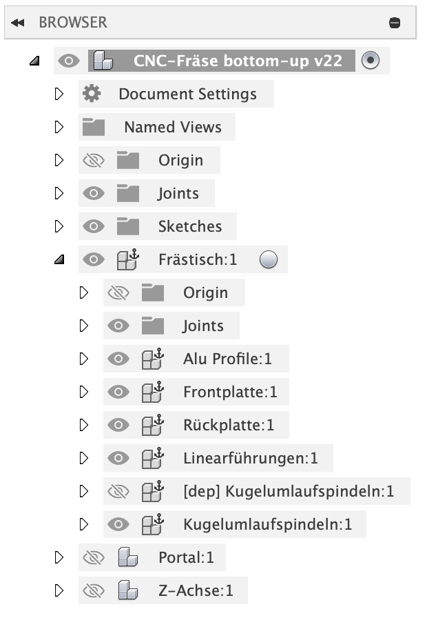 Auf dieser Seite möchte ich einige Tipps zusammenstellen, die mir bei der Konstruktion der Fräse in Fusion geholfen haben.